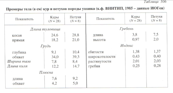 Жизнеспособность. Ни одна порода, не исключая улучшенной русской, не может соперничать в отношении выносливости с ушанками. Ушанки, благодаря своему обильному оперению и компактному складу, не боятся морозов, не отмораживают гребней, сережек и ног (Абозин 1886; Крылов 1896; Иванов 1924) Сохранение цыплят – 87-94% (Пенионжкевич, 1962; Пароньян, Юрченко 1989), взрослых – 95%.
